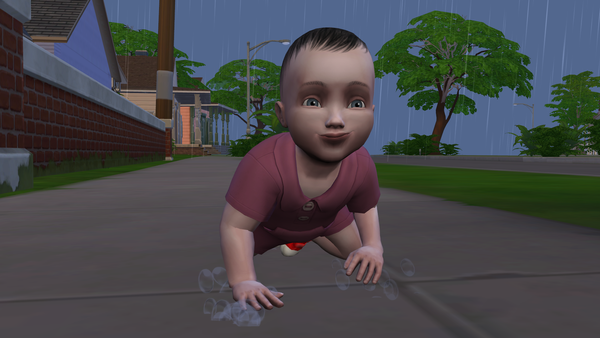 Thanks both of you :) Here is the Alien Infant who never shows their true form and also appears crawling around the world (Thanks to a sims 4 bug) Daisy Moon. Part of the Moon Household. She and her family never show their true form and try to hide it. They want to act more human then Alien. Her Toddler Brother is Conner Moon. Her Other brother aged Child is Davin Moon and her Parents are Olivia and Dan Moon. Daisy and Jack are really good friends too :)