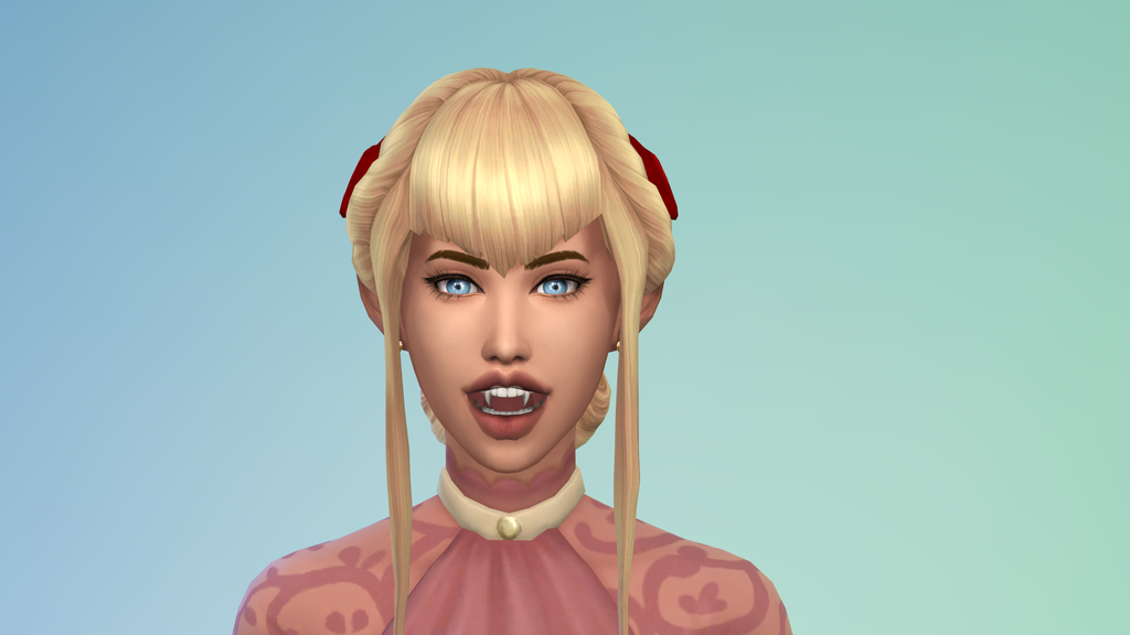 I'm terrible at making Sims, so I'm still in CAS, but this is my new Vampire: Lucine Delacourt (along with her dark form).