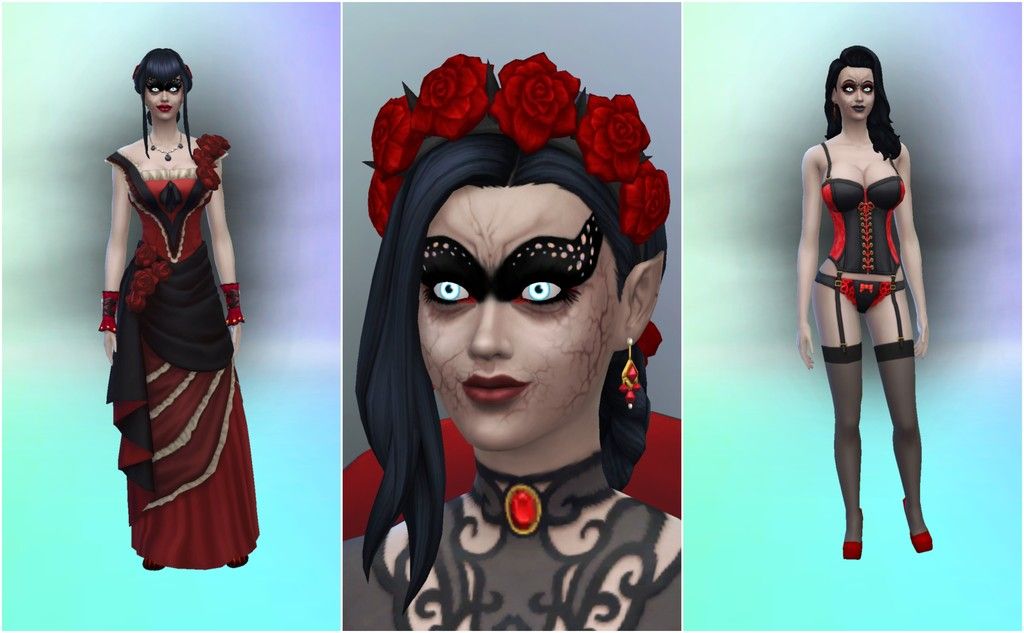 One of her dark party looks, a close up of her face for everyday 1 and her dark nightwear (to lure in unsuspecting victims >:) )