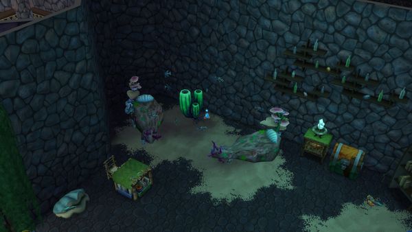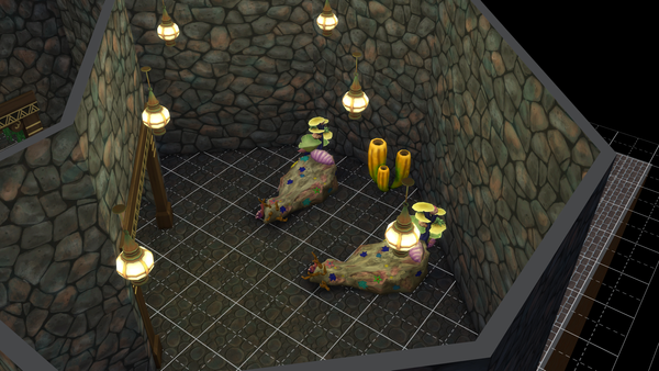 Right now, I'm transferring things from my older save to my new save. For this build, I am making it a residential rental that all my merfolk will live in. The first household in my rotation is the Zalrian Pod, so I started getting their grotto finished first. Just getting everything moved from rooms I saved to the gallery and arranging things the way I wanted took an entire hour. Eventually, I'll be doing everything from scratch.