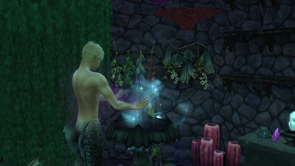 Part of setting things up involved setting in motion Damion's involvement with other merfolk and making sure he has a functioning lair. For the most part everything works, but the Sea Witch Cauldron appears bugged when contracts are being used with the cauldron. I'm going to redownload the mod to see if that helps. If it doesn't I'll let, Spinning Plumbob know.