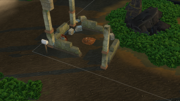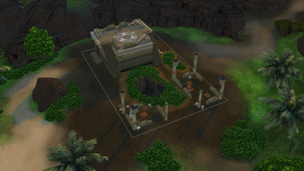 At Key Point, I created Wayfarer's Atoll. This is a Generic Lot that will become a beach lot. I chose the Generic Lot type because it has fewer townie sims appear. This is the version of the lot that is in decline. I have a version of it that is more alive, but it isn't fully developed. Working on this lot, I decided to represent the conservation efforts around Mua Pel'Am in my builds.