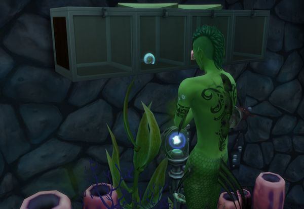 I finally caved and added the Displays from Crystal Creations to Damion's Lair. Sea Witches can collect 4 things from other sims: Souls, Youth, Love, and Voices. With Mods, there are 8 occults in my game, and it's Damion's goal to have all 4 of each thing from every single occult.