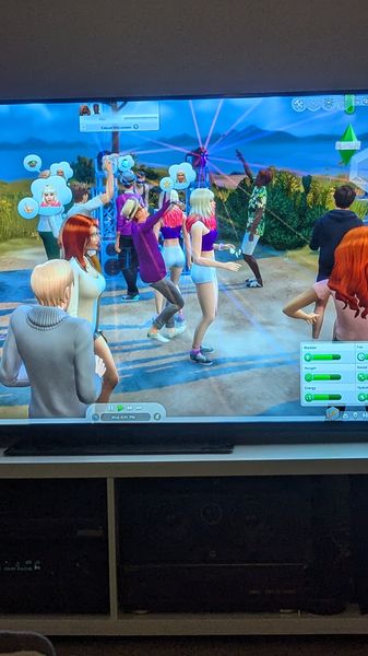 It is a great photo of the dance party! @cbarber89 🙂 There looks like there are two of some of the same sims or twins.