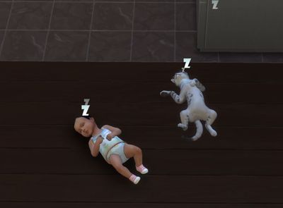 @Ellupelluellu Cats in Sims 4 are hilarious and I think very underrated for their entertainment value. The way that toddlers interact with cats and kittens is the most adorable thing I've seen in the game. This cat loves to follow the new baby around and take a nap wherever the baby takes a nap.