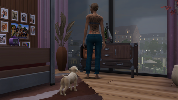 It is a cute photo of Louie looking at her tattoo 🙂The evening photo of Nordhaven through the window is lovely! ❤️The lights from the windows of the buildings and the street lamps are very nice in the midst of the evening darkness.