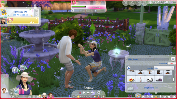 My Sim proposed to her boyfriend today with a ring she made!๐ฅฐ He is also wearing a chunky bracelet that she made and, in her profile, you can see her wearing some necklaces that she made. Unfortunately, because it is summer, they aren't wearing their outfits that came from the Crystal Creation SP, but they are wearing their hot weather clothes. At least they match! ๐ฅณ Actually, I think the shirt he is wearing is from the new pack, but you can only see the back.
