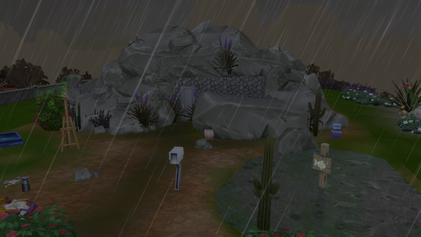 "Somewhere in Strangerville, residing in a cave (OOC: Not built by me, I forgot who made this lot), is me, Jilly Carson!"