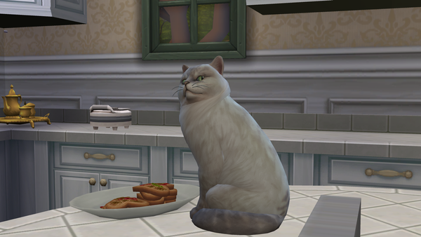 The cat does look like he is the one that owns the home! 🙂He is enjoying the pancakes! The look on his face when he is sitting on the counter beside the plate of food is very expressive!