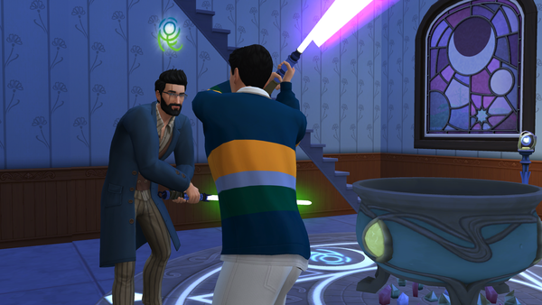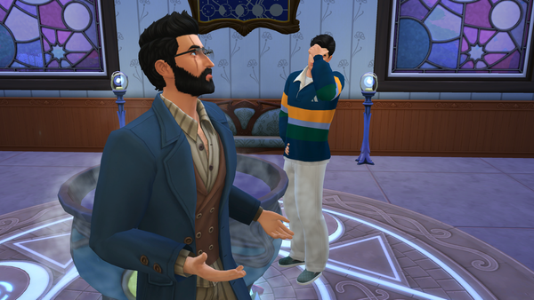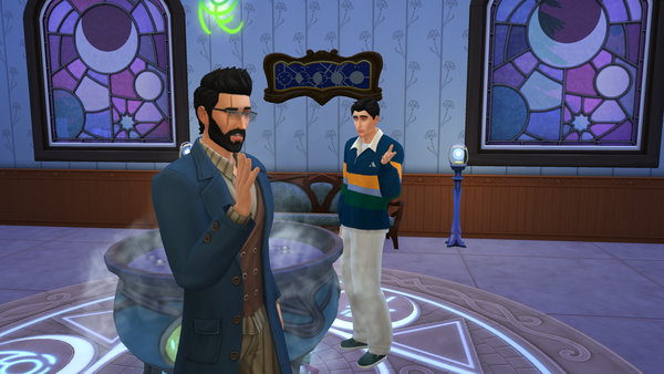 "You look smug and sus. Magic Realm shenanigans?" "Just Dad being nosy. Guess what happened."