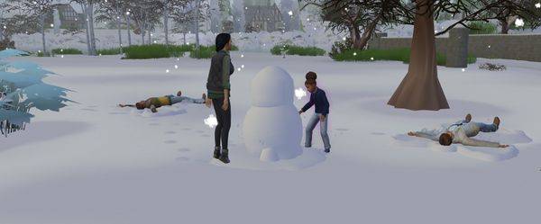 There was a lot of snow falling in Windenburg on Winterfest Day, so after opening gifts, everyone eventually made it outside to play in the snow. For Bernadette, snow was something new since she grew up in Strangerville.