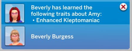 I thought you had to complete the Sticky Fingers aspiration to earn the Enhanced Kleptomaniac trait. Super useful if you want to have a career as a self-employed burglar. I'm impressed (or should I say concerned?) that a child was able to complete that.
