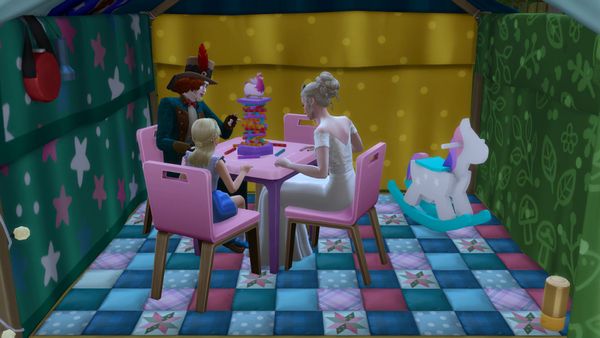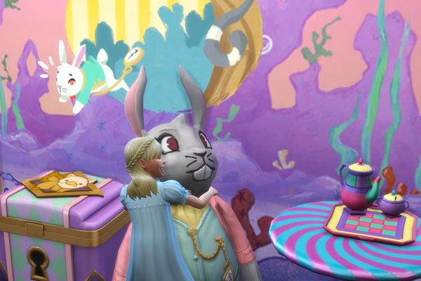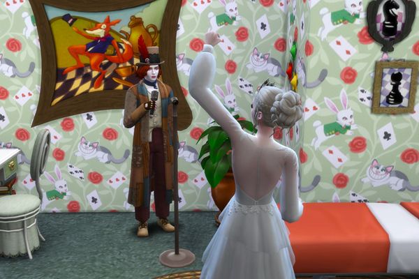 They are lovely photos of the Wonderland character sims in their Wonderland themed home ๐Alice is sweet hugging the rabbit ๐Cheshire Cat is cute asleep on the shelf ๐ด