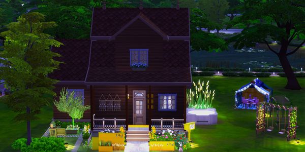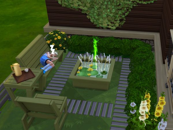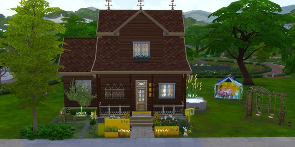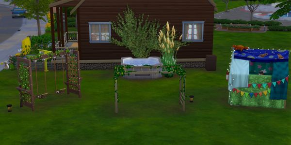 The outdoors areas are lovely! โค๏ธThe front garden area with the pretty flowers and using items from the new kit is very nice! The art gallery looks great there. The corner sitting nook is very nice. The fountain is pretty ๐ The kids play area is great. Sims will enjoy playing on the equipment and in the tent there.