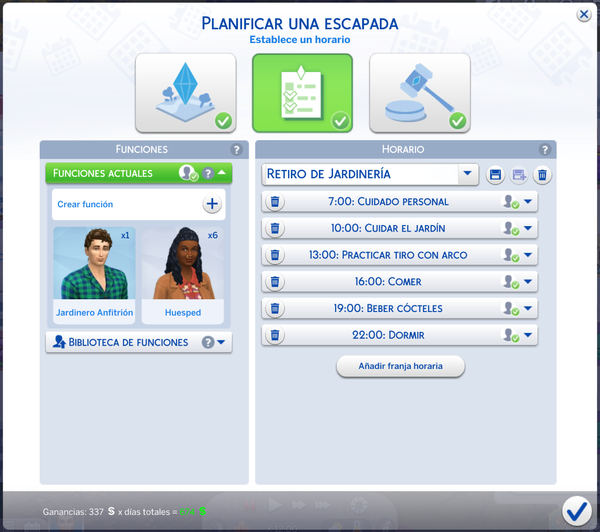 Creé funciones tanto para el anfitrión (mi Sim jardinero) como para los 6 huéspedes.