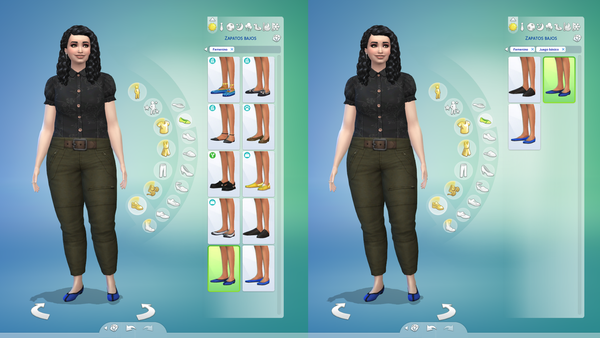 En estos días cuando estaba jugando sin CC ni Mods me encontré con que hay dos pares de zapatos que siendo el mismo modelo aparecen dos veces.