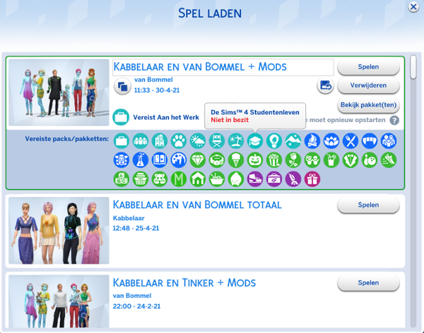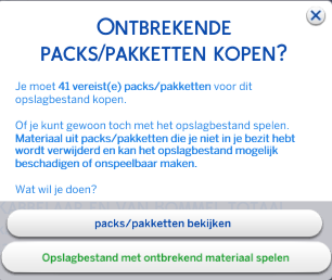 Het spel vertelt mij dat ik geen packs meer bezit bij het laden van mijn huishouden. Wat is er gebeurt?