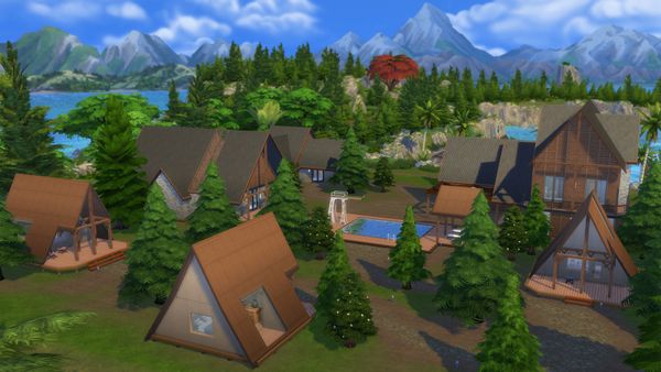 „Chciałam stworzyć ośrodek, w którym Simowie mogą spotkać Nancy Landgraab podczas ćwiczeń na rowerkach stacjonarnych lub witać słońce z Judith Ward podczas porannej jogi” – wyjawia KiwiSimsKate. „Są w nim elementy rustykalne, choć inspirację czerpałam głównie z odwiedzanych przez celebrytów prywatnych ośrodków w Aotearoi. Istotną sprawą była dla mnie wysokość budynków, aby Simowie mogli się odprężyć po całym dniu ćwiczeń, podziwiając zachodzące słońce. Luksusowa strefa biwakowa umożliwia Simom nawiązanie kontaktu z przyrodą, przyjemną pobudkę o świcie oraz spokojny spacer pośród drzew”.