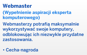 Wypełnienie aspiracji "Ekspert komputerowy" daje naszemu simowi nową cechę - webmaster.