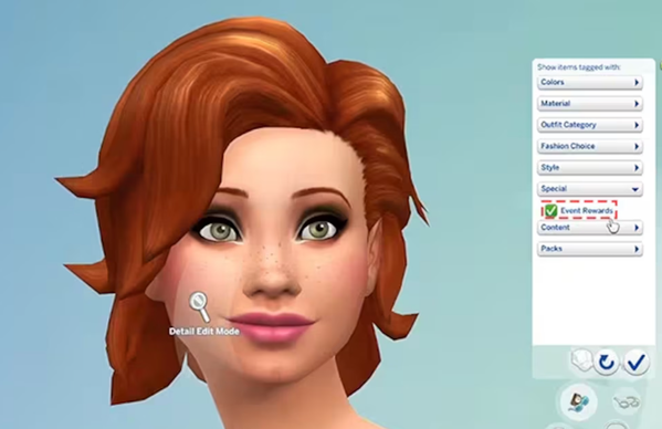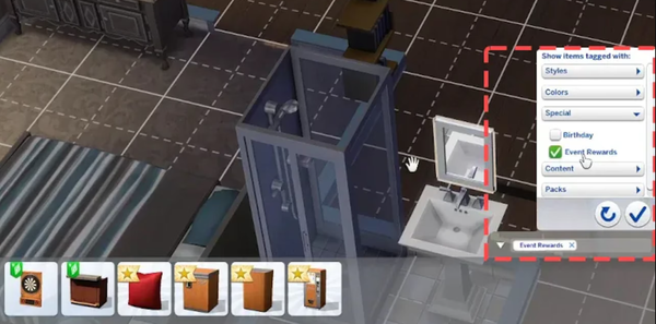 - Po odebraniu nagród znajdziesz je w trybie budowania lub Stwórz Sima. Wszystkie nagrody oznaczone są ikonkami plumboba.
