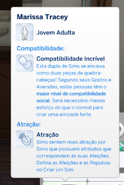 Gostaria de saber se a atração que os Sims sentem por outros não é apenas romântica ou se pode ser levada em consideração para amizades. Por exemplo, o meu Sims é gay, se interessa apenas por homens (e no oba-oba tbm), mas, às vezes, aparece a opção de "atração" em Sims femininas, então gostaria de saber se isso é uma questão de amizade ou de atração romântica.