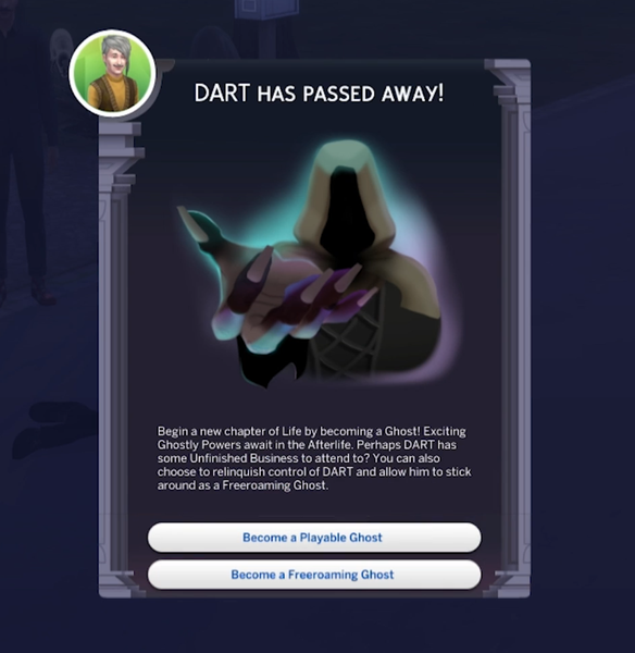• No momento da morte, os Sims agora têm a opção de "Tornar-se um Fantasma Controlável" ou "Tornar-se um Fantasma Vagante".