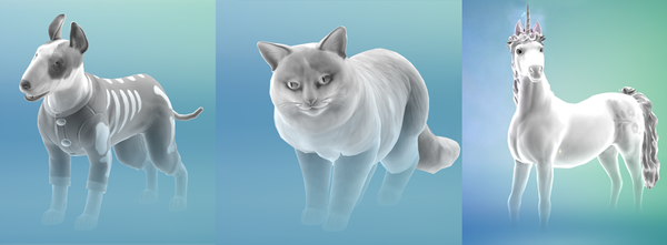 • Simmers podem criar Fantasmas de Cães, Gatos e Cavalos idosos no Criar um Sim com as expansões Gatos e Cães e Tomando as Rédeas.