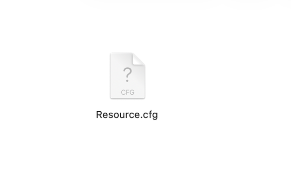 Right click on the Resource.cfg file and select TextEdit to open it with. Does it open?