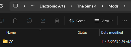 - Keep Organized: Find a system in your mods folder that works for you. You can have up to 5 nested folders. Organize your cc/mods for example by site you downloaded from and/or type of downloads.