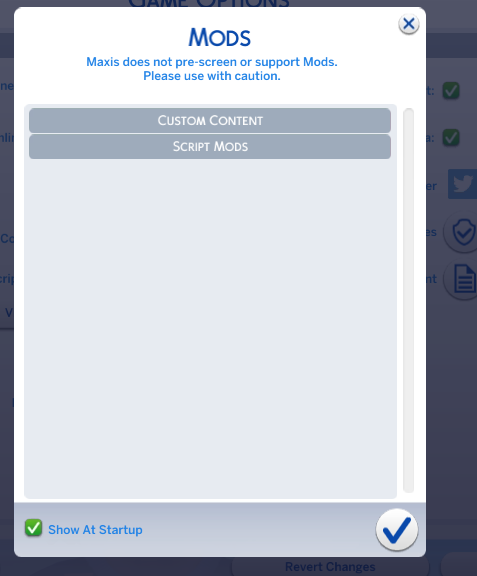 - Enabling Mods/CC: Mods/CC need to be enabled in your game to work. If you're using script mods, make sure to enable them separately. Patches disable these options automatically. This is to protect your game. You need to manually enable them again but make sure your mods/cc are still compatible before doing so. If the option is instantly disabled again, then you need to add Sims as an exception to your Antivirus program.
