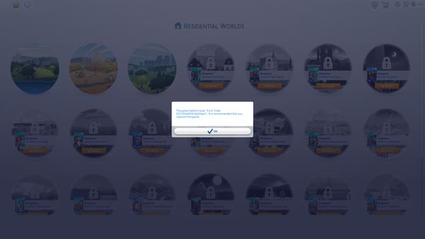 It happened after updating the game. After selecting the "new game" option, I started over and created a new sim. I placed the sim somewhere, and when I tried to play the game, it gave me an error code. When I tried to play with any family, it gave me an error code every time. How can I solve this problem?