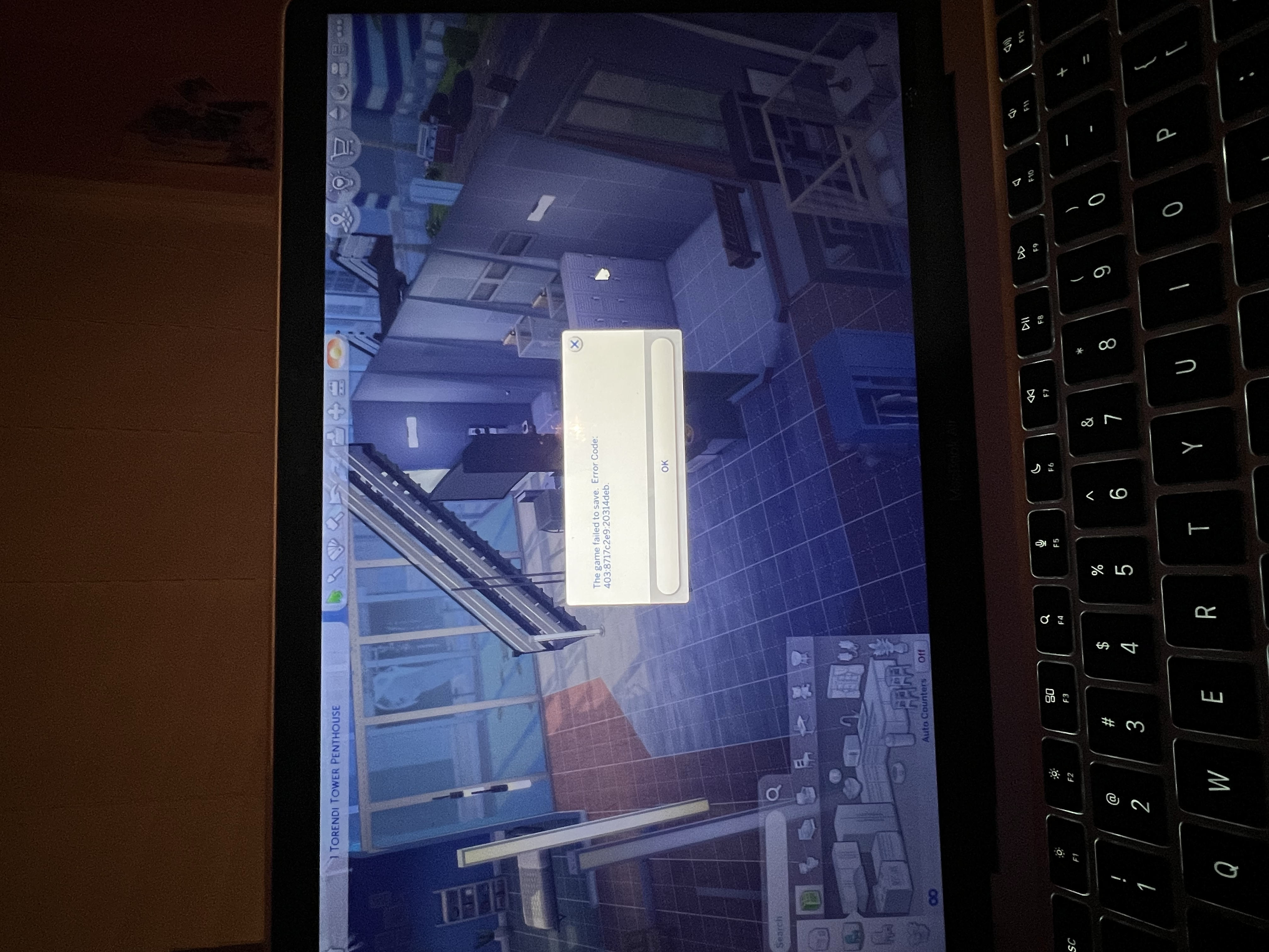 Since the new Update I can no longer save my game if I save in Build mode I get the Error Code 403:8717c2e9:20314deb if I save when going to the Map the change appears on the Map but if I go back in the Lot it diddent save saving  while going to Main Menu dosent work either . I reloaded the Game the next Day emptyed out the Cache and repaired the Game and it still dosent work .So the Game i payed 1000€ for isent playable again its an Impertinenz .