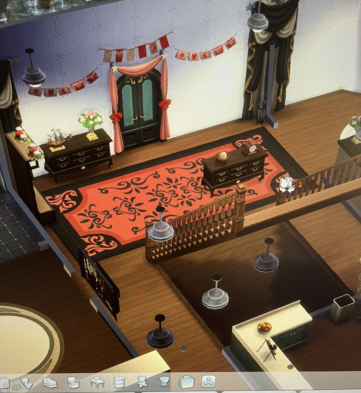 The thing is, the second floor has a huge open area where you can look down into the first so floor. Except for the fact that I can’t see anything at all when I look down into the first floor. Not even the stairs. I can still click on stuff and move them, but I just can’t see it and it’s very distasteful and annoying.