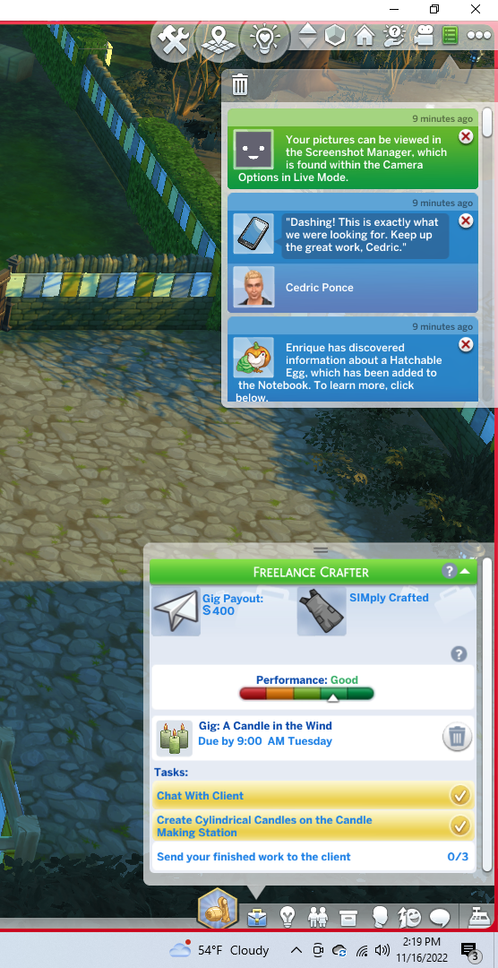 My sim is in the freelance crafter career and whenever they choose a candle making gig and i send the candle, it disappears from the sims inventory, but the "Send finished work to the client step doesn't complete. Doing gigs to make furniture works properly.