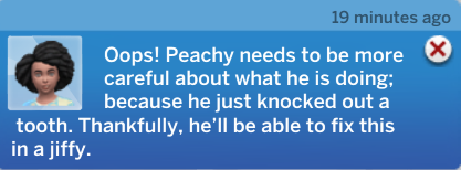 Probably better safe than sorry, but is it possible that this was actually safe since it seems to have jumped right over the loose tooth moodlet to the result of a lost tooth?