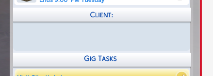 I just started playing with the Dream Home Decorator pack and my sim went on her first gig as an interior designer.  I couldn't find out any sim preferences (I knocked on the door, and asked every sim in the household multiple times using the interior decorator chat options) and no preferences popped up in the career UI under the "Client" section even after trying for hours in-game.  Even when I trashed the current gig and tried a different one the same thing occurred. I tried it with and without mods - same result.  I only figured out there was something wrong with the UI when I was watching some youtubers play the pack to try to figure out what I was doing wrong.  I have tried repairing and updating my game, restarting my computer - no change.