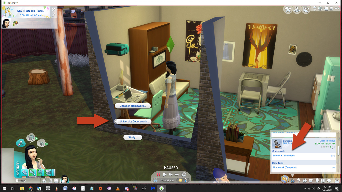 Steps: How can we find the bug ourselves? Have Sim live at home while attending College, try to write a term paper when required.