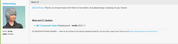 • Broken Mods https://forums.thesims.com/en_US/discussion/comment/18240944/#Comment_18240944