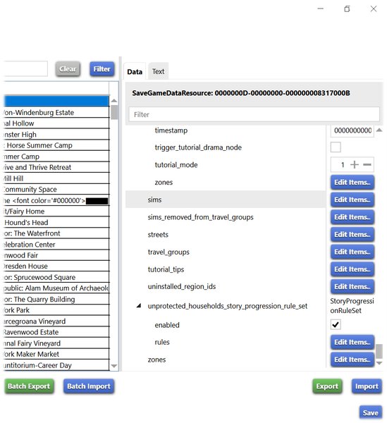 In the picture above you can see that I've got 2 undead mummy skins costing 701.8 each, that pretty high for a tattoo, considering I've got 2, so what I'm going to do is delete 0000000000000A14 in my game this tattoo belongs to a Sims called Spookenkhamun De Nile what I need to do next is enter the save game data on the right menu and click edit items