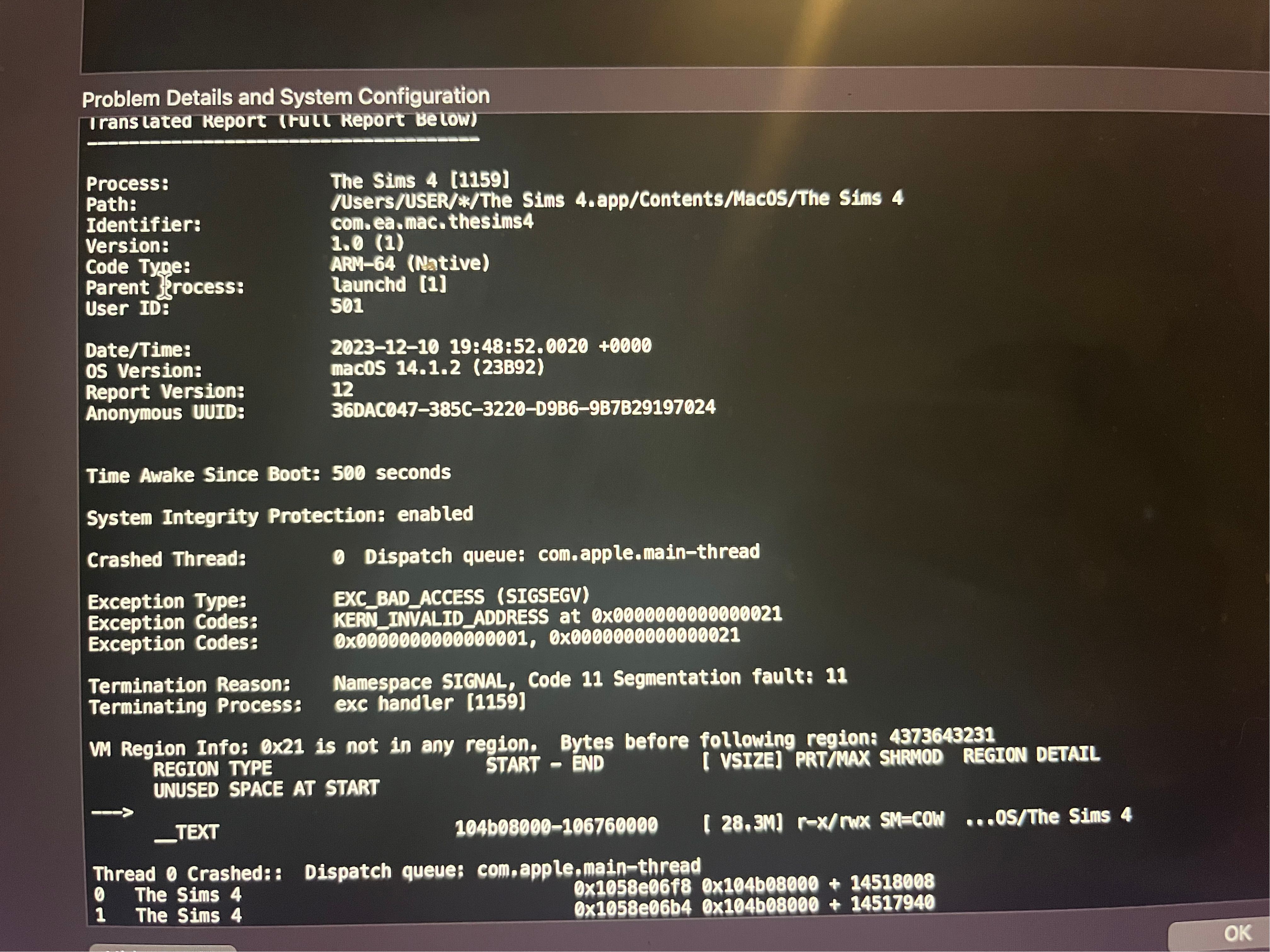 One specific household is causing my game to crash. Ive tried other households and it works but when im on main menu and i click that save it immediately crashes. It happened suddenly I was playing the household then when i tried to play them again it didn't work. Ive tried to put my mac on safe mode, repairing the game updating the game updating my mac updating all my cc but its just not working. I have a Macbook Air 2022. M2 Chip, 8GB. macOS Sonoma 14.1.2. I have also 102GB of storage left. anything helps please thank you