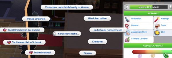 ich habe mir das neue Erweiterungspack Leben & Tod geholt. Nun wollte ich mit meiner Simin dafür sorgen, dass sie ein Baby vom Sensenmann bekommt. Beide Beziehungsleisten sind voll und die beiden sind auch in einer festen Beziehung. Bei mehreren Besuchen habe ich "Baby machen" ausgewählt, jedoch verschwindet die Aktion direkt und nichts passiert. Selbst normales Techtelmechtel funktioniert nicht. Da stellt sie zwar die Frage und beide freuen sich doch dann passiert einfach nichts. Ich spiele OHNE Mods und habe es auch schon mit Spiel reparieren versucht. Ist das ein Bug oder hat da jemand eine Lösung?