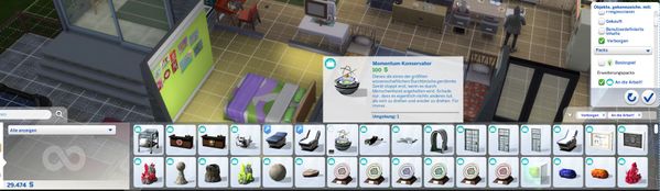 Es ist übrigens nicht das erste Mal, dass einfach Sachen in meinem Spiel verschwinden. Das Kleinkindertablet und diese Kiste für Kreuzstichprojekte waren auch schon mal einfach futsch. Und der Momentum-Konversator jetzt schon das zweite Mal. Bei den anderen Dingen ist das nicht so schlimm, die kann man einfach nochmal im Katalog kaufen. Aber den Momentum-Konversator gibt es nicht im Katalog, den muss man am Erfindungserbauer herstellen.