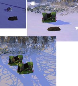 Die Frösche und Steine verschwinden wie üblich, die Erdstellen darunter bleiben erhalten und können, wie oben beschrieben, erneut durchsucht werden. Ob sie sich genau wie die Pflanzen oben verhalten würden - ich weiss es nicht. Bei der Pflanze habe ich mal mitgezählt, es brauchte 28 (+ schon Einige an den vorherigen Tagen) Ernten bis das glitzern verschwand und diese sich danach wie oben die anderen Pflanzen verhielt. Offenbar hatte mein Sim diese bereit lang genug belästigt. 😀