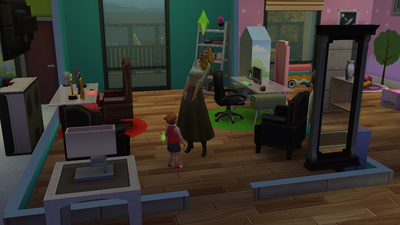Algo similar ocurre cuando baño a los perros o cuando mi sim baja al infante de su silla para comer (sus brazos se alargan) hasta que dejan al infante en el suelo. Luego trataré de conseguir una captura de pantalla de lo que ocurre con el baño de los perros y sobre la silla de comer.