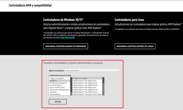 Lo de la tarjeta gráfica, lo he estado mirando pero estoy un poco perdida. Tengo la AMD esta, esto si que he podido verlo, pero no me queda claro cómo hacer para actualizarla. El enlace que me diste me redirige a la siguiente página cuando selecciono AMD: