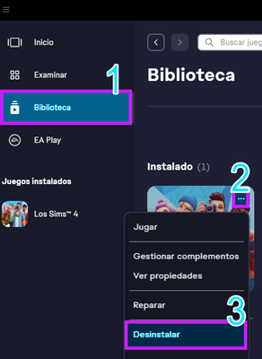 Desinstalael juego. Para ello dentro de EA app,