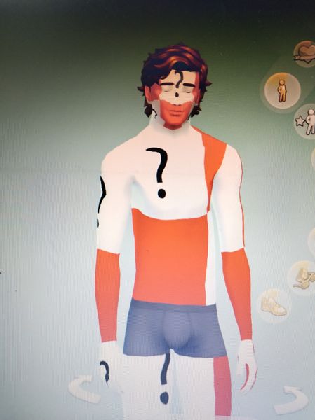 Ayer estuve jugando con la partida que tenia guardada y resultó que mis sims tienen sus pieles los colores del equipo inglés (blanco y rojo) en todo su cuerpo, además de unos signos de interrogación....
