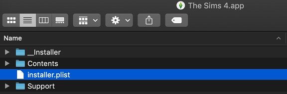 Ve a la carpeta Aplicaciones y busca el icono de Los Sims 4. Haz clic derecho en el y selecciona "Mostrar contenido del paquete". Se abrirá una ventana con varias carpetas y un archivo llamado installer.plist. Copia dicho archivo usando el comando Edición > Copiar o pulsando las teclas Comando + C del teclado.