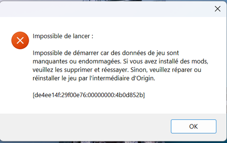 Bonjour, Je viens de télécharger EA sports et les Sims 4 sur mon nouvel ordinateur mais lorsque j'essaie d'ouvrir le jeu, ce message d'erreur apparaît :