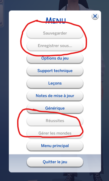 • Il faut être dans une partie pour pouvoir ajouter un sim depuis la galerie. Tu ne peux pas le faire depuis l’écran d’accueil. Aucune partie n’est lancée quand on est sur l’écran d’accueil, ce qui fait que certaines options ne sont pas accessibles.